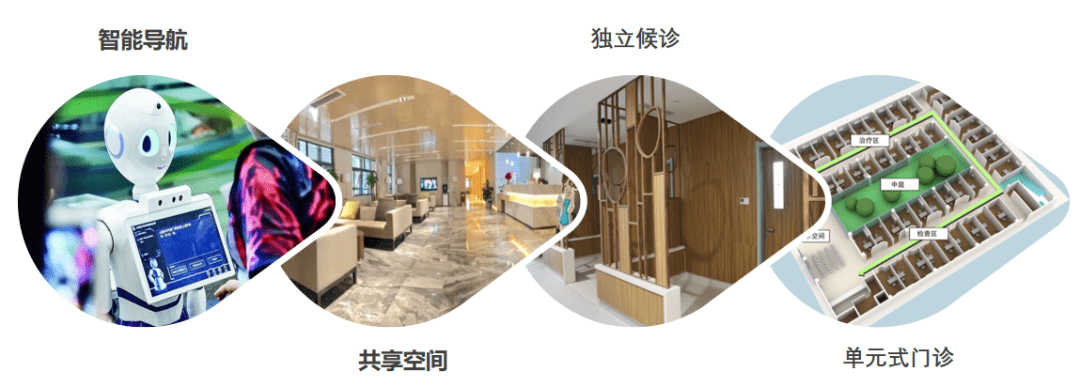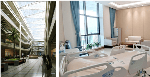 現(xiàn)代醫(yī)院設(shè)計越來越注重人文關(guān)懷,在醫(yī)院設(shè)計時一方面充分考慮患者的需求,另一方面還要充分考慮醫(yī)護工作者的需求。對患者的人文關(guān)懷體現(xiàn)在就醫(yī)的便利性體驗和舒適感,如醫(yī)院的智能導航、共享空間、獨立候診區(qū)、單元式門診的設(shè)計,以及醫(yī)患分行的通道設(shè)置,分開設(shè)立醫(yī)用電梯、病梯及客梯,讓病人的就診實現(xiàn)極大的便利的同時也實現(xiàn)在保護患者隱私的目的。對于住院患者,改善病區(qū)環(huán)境,加快規(guī)范化病區(qū)建設(shè),預留家屬陪護空間,同時也要重視醫(yī)療環(huán)境中色彩與醫(yī)療的關(guān)系,改善空氣質(zhì)量,加大綠化空間建設(shè)力度。