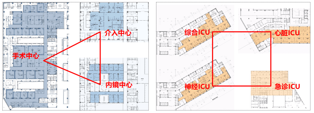 另外,醫(yī)院采用以疾病、器官、系統(tǒng)??茷橹行牡脑\療模式,專業(yè)集中設(shè)置,加強聯(lián)合會診,提高醫(yī)療效率。在醫(yī)院管理上同類型科室統(tǒng)一管理,例如手術(shù)類平臺(手術(shù)中心、內(nèi)鏡中心、介入中心),ICU平臺(心臟ICU,急診ICU,神經(jīng)ICU、綜合ICU)在人員調(diào)配,設(shè)備使用方面實行統(tǒng)一管理。