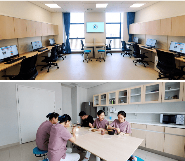 對于醫(yī)護工作者的人文關(guān)懷體現(xiàn)在提高醫(yī)護工作者工作環(huán)境,加強工作空間和會議空間建設(shè)、提高醫(yī)護工作者休息環(huán)境,加強休息空間和交流空間建設(shè)、在病患護理上實現(xiàn)護理站功能改變,加快無陪護病房建設(shè)以及智慧醫(yī)院建設(shè)等方面,通過這些提升,實現(xiàn)醫(yī)護人員工作環(huán)境的改善,同時有助于提高工作效率。