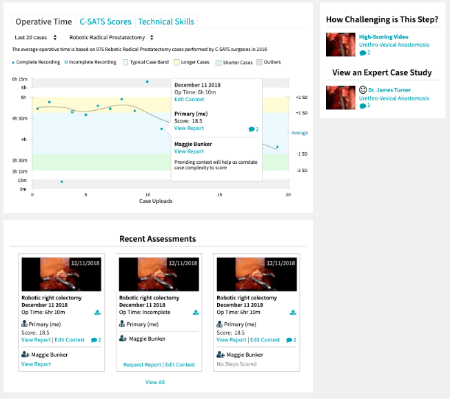醫(yī)生可將他們的手術(shù)案例安全地存儲(chǔ)在私人C-SATS視頻庫中,并獲得人工智能和數(shù)據(jù)分析得到的臨床見解,還可以獲得專家的評(píng)估和反饋,不斷完善他們的技能。