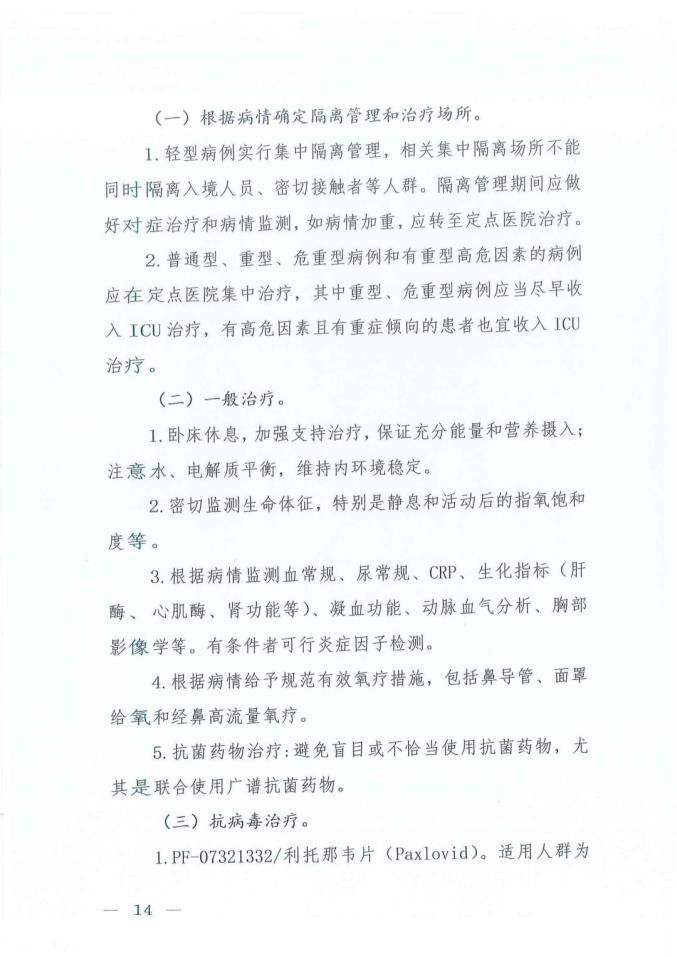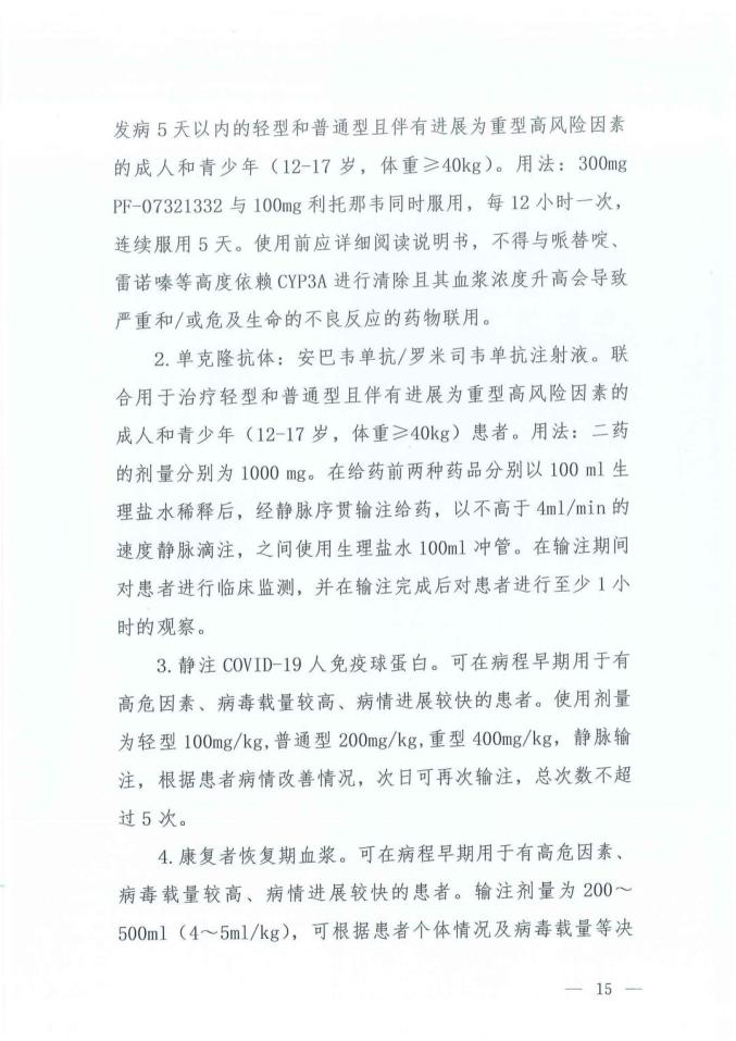 8、“抗病毒治療”中增加:PF-07321332/利托那韋片(Paxlovid)和安巴韋單抗/羅米司韋單抗注射液。