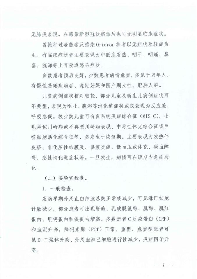 3、“臨床表現(xiàn)”中提到:曾接種過疫苗者及感染Omicron株者以無癥狀及輕癥為主。有臨床癥狀者主要表現(xiàn)為中低度發(fā)熱、咽干、咽痛、鼻塞、流涕等上呼吸道感染癥狀。