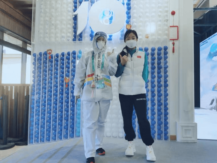 志愿者與殘奧高山滑雪冠軍張夢(mèng)秋合影