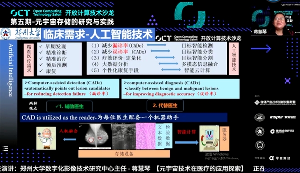 “利用我們構(gòu)建的大數(shù)據(jù)平臺(tái),我們用帶著專家意見的高質(zhì)量標(biāo)注數(shù)據(jù)進(jìn)行新一代元宇宙技術(shù)研究,以新冠肺炎、肺癌、乳腺癌和肝癌為特色病種,研發(fā)了VR三維重建、X線鉬靶圖像檢測(cè)、肝癌自動(dòng)分析等基于大數(shù)據(jù)的人工智能輔助診斷和療效評(píng)估新技術(shù),這就是我們展示的元宇宙技術(shù)應(yīng)用實(shí)例”,蔣教授表示。