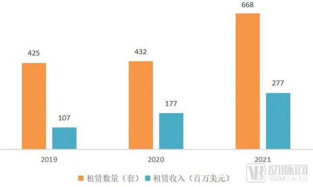 據(jù)年報數(shù)據(jù),在2021年、2020年和2019年里,各有668、432和425個達(dá)芬奇手術(shù)機器人投入租賃使用,并分別產(chǎn)生2.77億、1.77億和1.07億美元的營收。計算一下可以得到2021年每臺機器人年租費用約為41萬美元。此外,由于在租賃合同中有在特定時間點客戶可以行使買斷權(quán)的協(xié)議,在過去3年中,這方面的收入分別為9600萬、5222萬和9280萬美元。盡管營收的絕對數(shù)據(jù)并不算多,但租賃卻是一種行之有效的打開市場的方式。