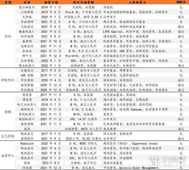 國內(nèi)主要企業(yè)手術(shù)機器人布局,數(shù)據(jù)源于動脈橙