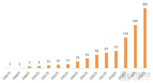 從2006年12月國內(nèi)引進(jìn)第一臺達(dá)芬奇手術(shù)機器人開始,截至2021年底全國累計裝機262臺。2013年以前年裝機量基本低于5臺,2014年~2018年新增在10臺左右。最近3年呈現(xiàn)爆發(fā)式增長,分別為 59、54和73臺。