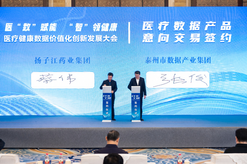 會上,泰州市數(shù)據(jù)產(chǎn)業(yè)集團與揚子江藥業(yè)集團就“三高六病”數(shù)據(jù)產(chǎn)品達成意向簽約。