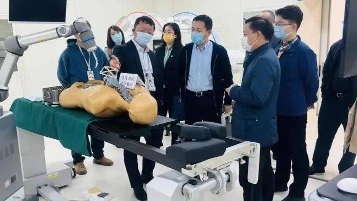 ▲ 海淀區(qū)醫(yī)保局調(diào)研天璣Ⅱ骨科手術(shù)機器人項目