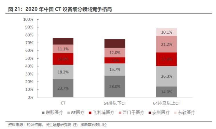 2020年,64排以下CT市場聯(lián)影醫(yī)療市占率第一,64排以上高端CT市場聯(lián)影醫(yī)療也僅次于GPS。民生證券測算數(shù)據(jù)顯示,預(yù)計(jì)聯(lián)影醫(yī)療CT設(shè)備遠(yuǎn)期市場規(guī)模為140-234億元。