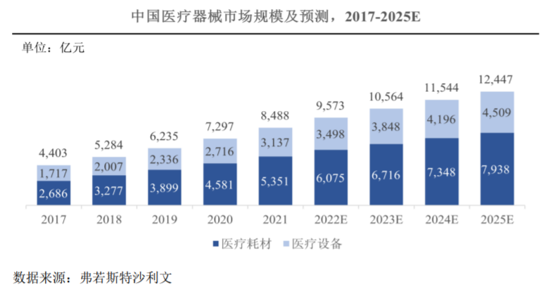 ??與全球醫(yī)療器械市場相比,中國醫(yī)療器械市場增長相對(duì)更加迅速。在居民生活水平的提高、國家對(duì)醫(yī)療健康領(lǐng)域政策扶持等因素的驅(qū)動(dòng)下,中國醫(yī)療器械產(chǎn)業(yè)進(jìn)入快速發(fā)展階段。自2017年至2021年,中國醫(yī)療器械市場規(guī)模從4,403億元增長至8,488億元,年復(fù)合增長率達(dá)17.8%,其增速遠(yuǎn)超全球醫(yī)療器械市場整體增速。未來隨著市場需求的進(jìn)一步擴(kuò)大、國家分級(jí)診療等政策的推進(jìn)以及行業(yè)技術(shù)發(fā)展帶來的產(chǎn)業(yè)升級(jí),中國醫(yī)療器械行業(yè)將有望繼續(xù)保持高速增長的態(tài)勢,深化高端產(chǎn)品的國產(chǎn)化發(fā)展過程,預(yù)計(jì)2025年中國醫(yī)療器械市場規(guī)模將達(dá)到12,447億元。