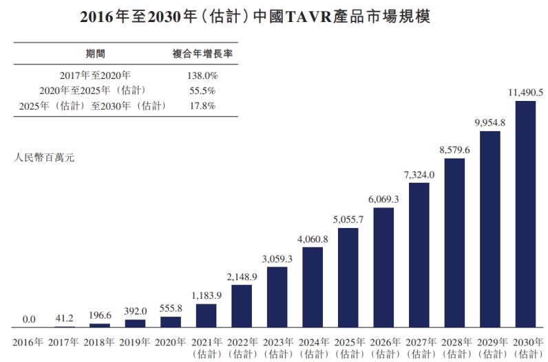 從市場(chǎng)規(guī)模來看,中國TAVR市場(chǎng)于2020年達(dá)到人民幣5.56億元,2017年至2020年的復(fù)合年增長(zhǎng)率為138.0%,TAVR市場(chǎng)預(yù)計(jì)將于2025年增加至人民幣50.56億元,于2030年增加至人民幣114.91億元,2020年至2025年的復(fù)合年增長(zhǎng)率為55.5%,而2025年至2030年的復(fù)合年增長(zhǎng)率為17.8%。