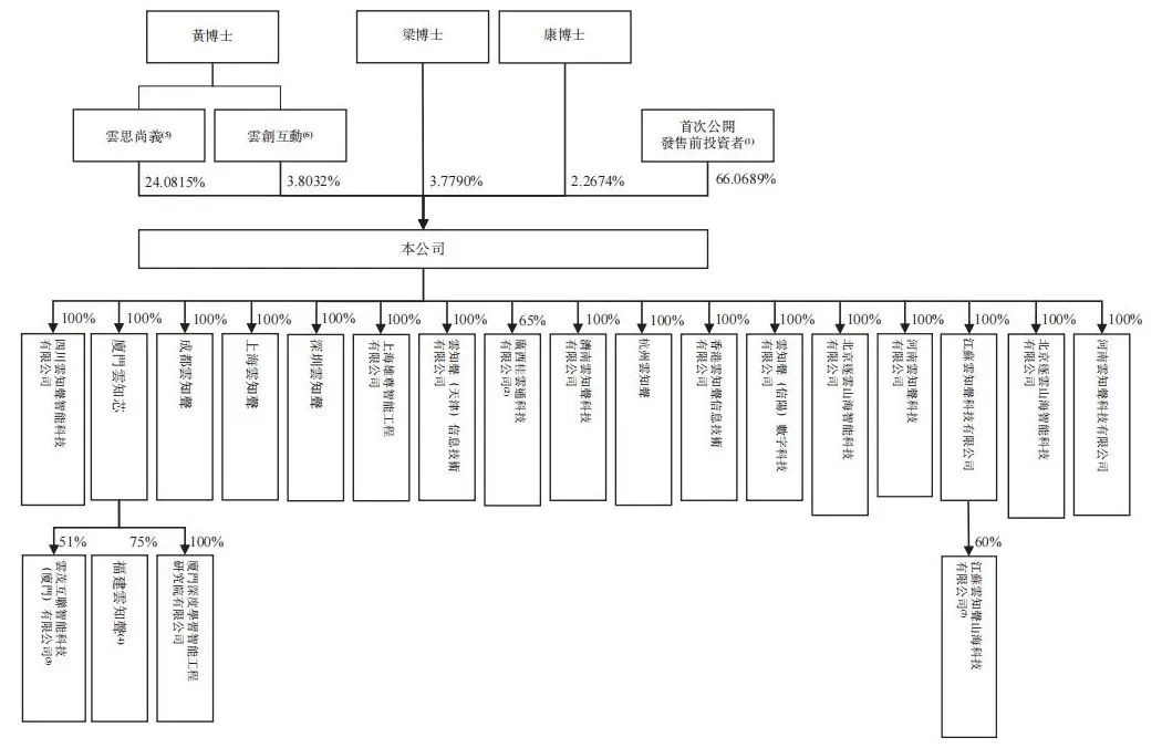 截至最后實(shí)際可行日期,梁博士、黃博士及康博士,根據(jù)彼等之間的一致行動安排合共于已發(fā)行股本總額中擁有約33.93%的權(quán)益,為云知聲的控股股東。