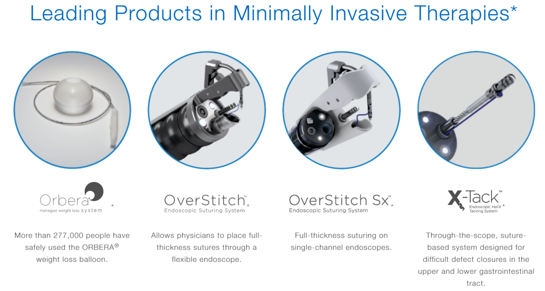 Apollo的產(chǎn)品線包括減肥球囊Orbera、內(nèi)鏡縫合系列產(chǎn)品OverStitch和X-Tack。