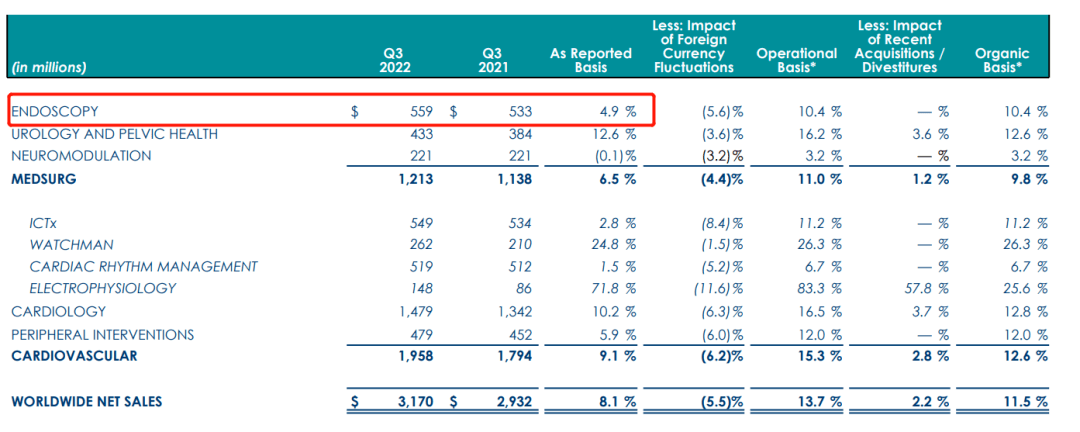 2022年Q3, 波科內(nèi)窺鏡業(yè)務(wù)營收5.59億美元,同比+4.9%,占據(jù)其總營收的17.6%。