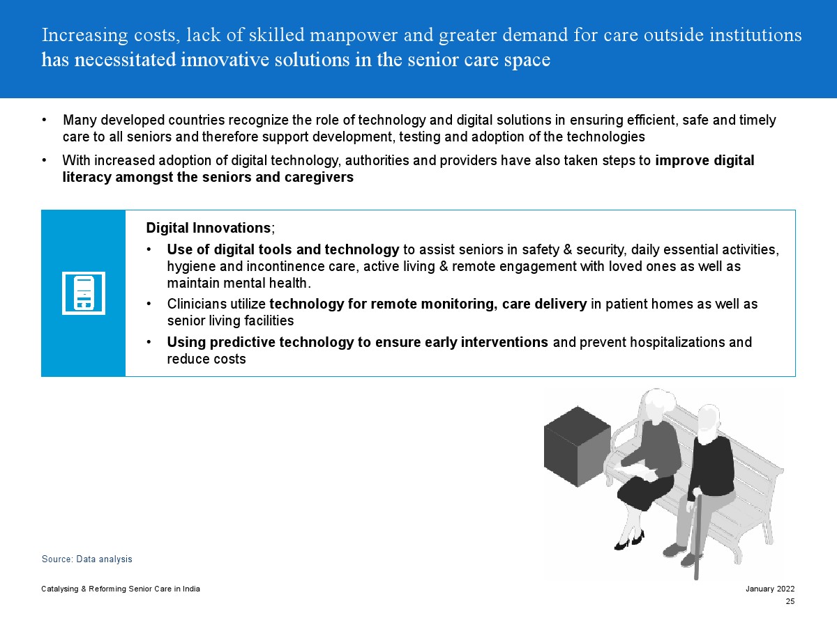 成熟的老年護理生態(tài)系統(tǒng)專注于創(chuàng)新解決方案,如數(shù)字技術(shù)、遠程護理交付模塊、使用人工智能和機器學習的早期響應、使家庭環(huán)境安全的技術(shù)等